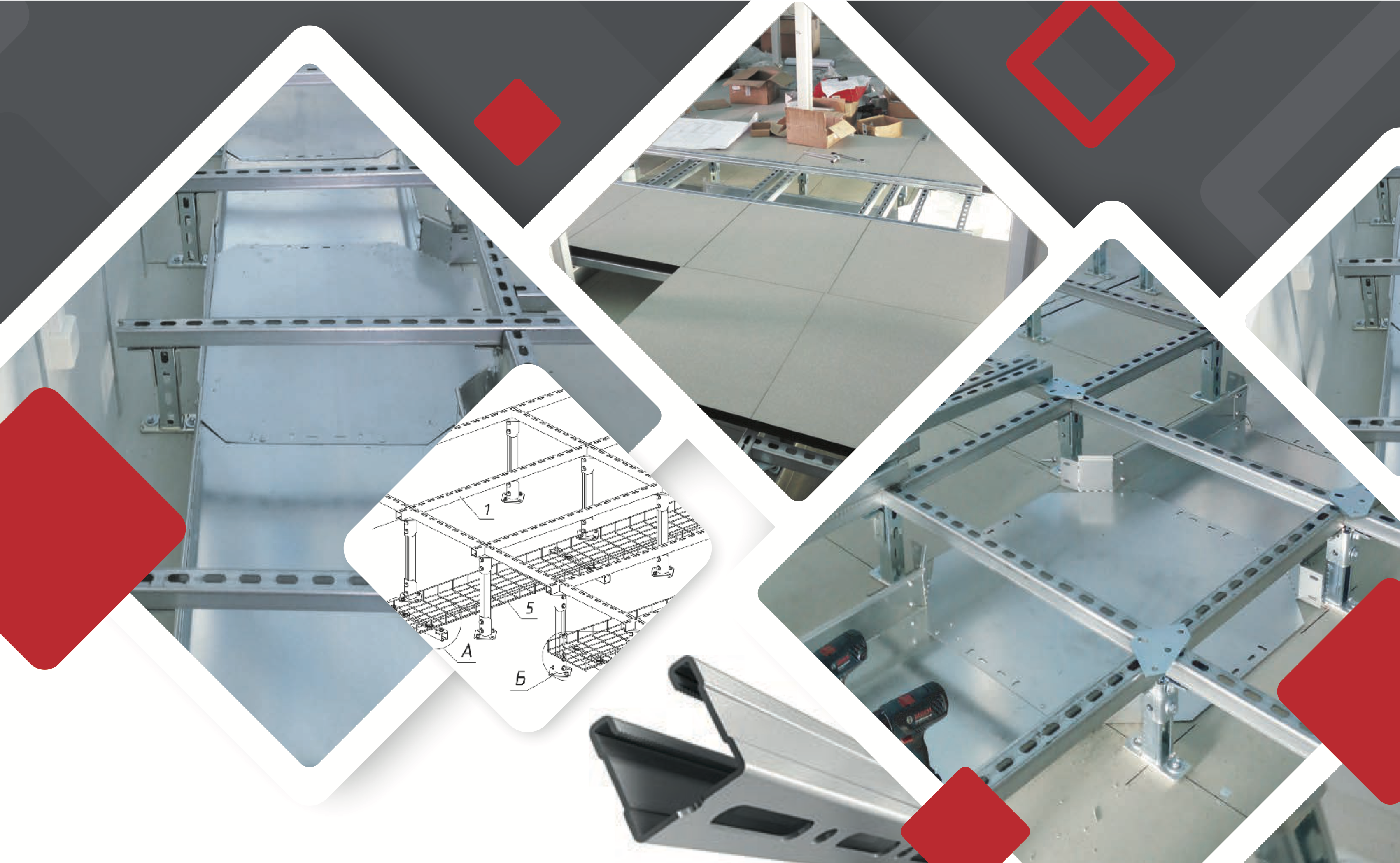 Устройство фальшпола позволяет поместить под ним все инженерные коммуникации и провода, при этом освободив максимальное пространство для работы. Расположенные под фальшполом коммуникации надежно защищены от повреж- дений, при этом доступ к ним возможен в любой момент: любая панель, лежащая на опорах, свободно поднимается. Фальшпол может быть выполнен в различных вариациях, включая сложную геометрию помещения.